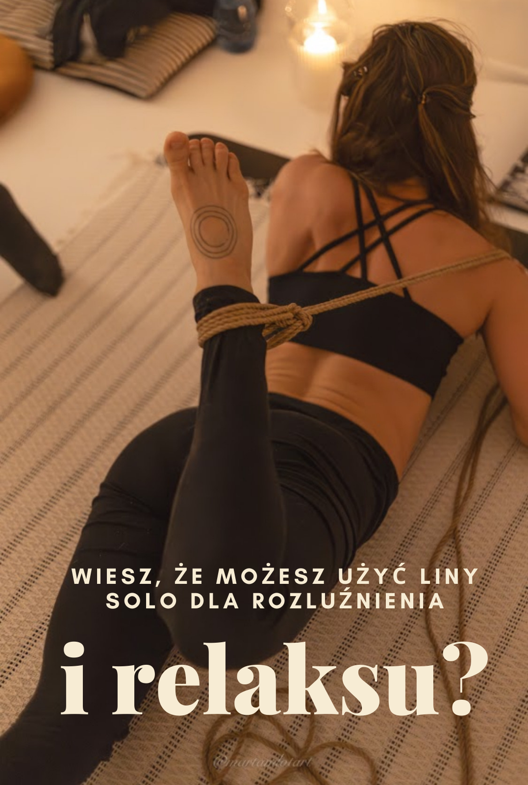 ✦ Załóż wygodne ubranie, które pozwoli na swobodną pracę z liną. Dobrym wyborem będą przylegające do ciała legginsy oraz obcisły top. Doskonale sprawdzi się strój do jogi.